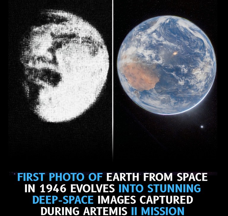Nearly eighty years later, missions like Artemis II have transformed that perspective. Modern high-resolution images captured from over 100,000 miles away reveal Earth in vivid color, showcasing oceans, continents, and atmospheric detail with remarkable clarity. These images reflect how far space exploration and imaging technology have advanced since those early experiments.