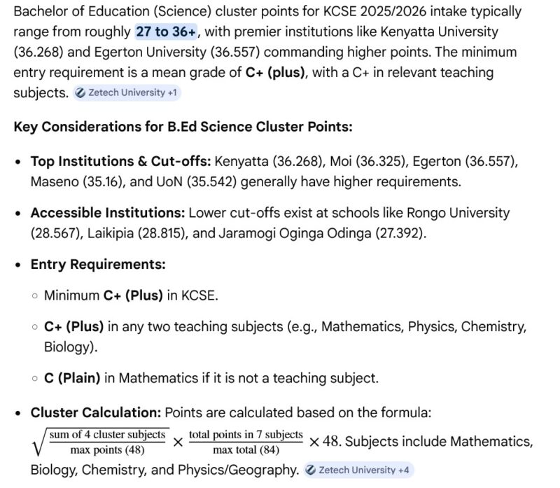 Bachelor of Education Science cluster points in Kenya